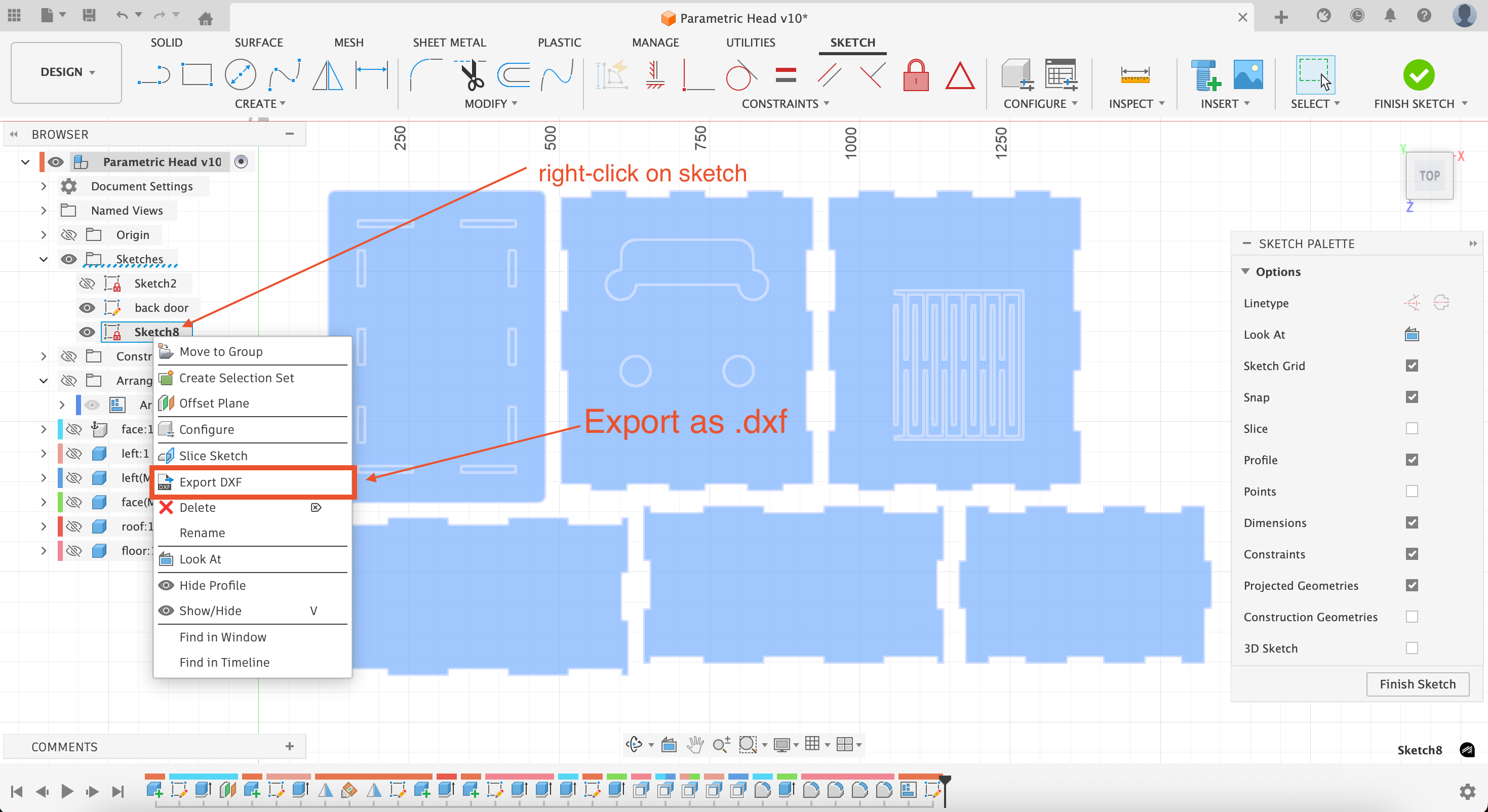 Parametric Head Design in Fusion (.f3d format)Parametric Head Design for production (.dxf)