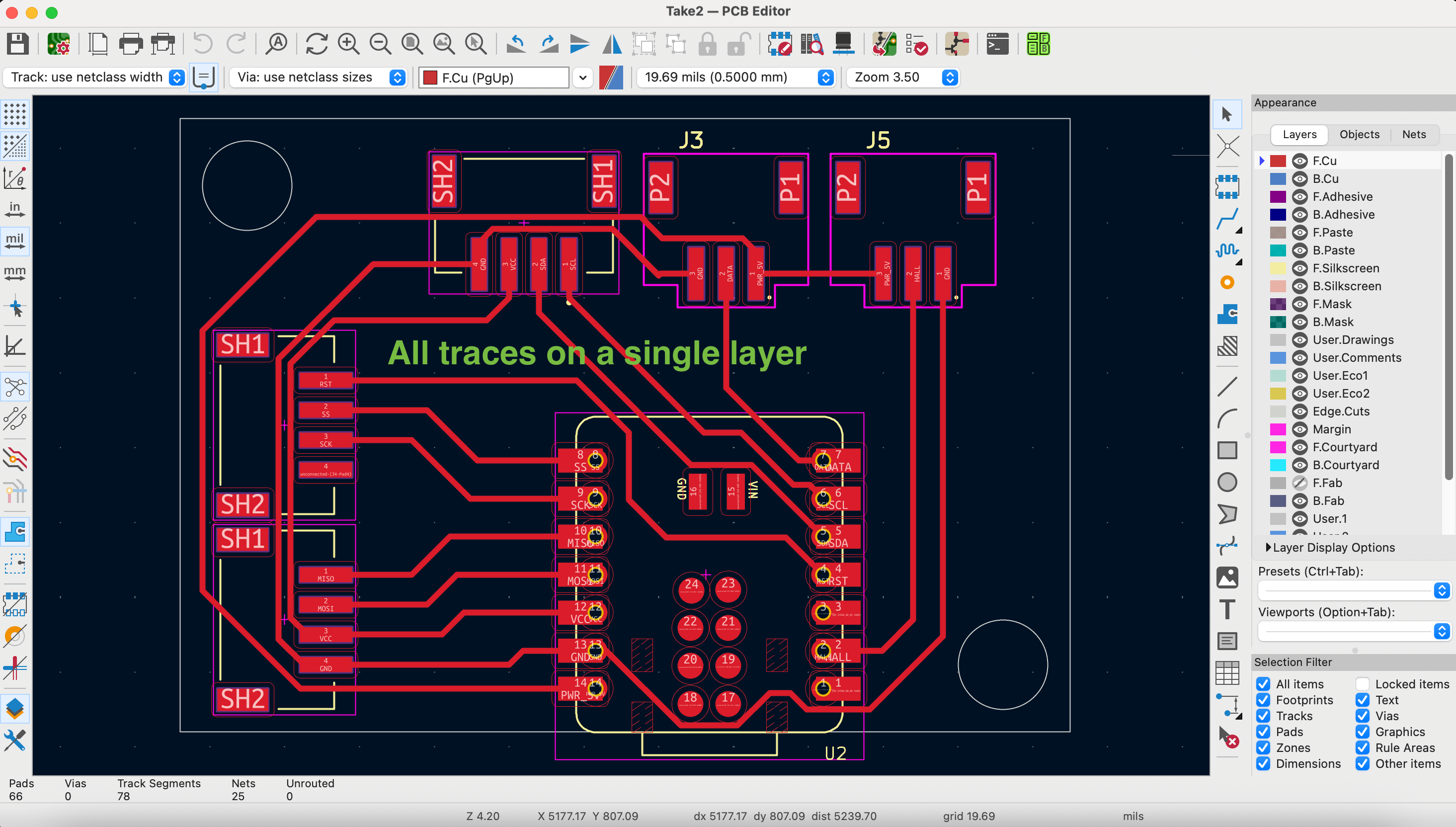 Here's the PCB layout: