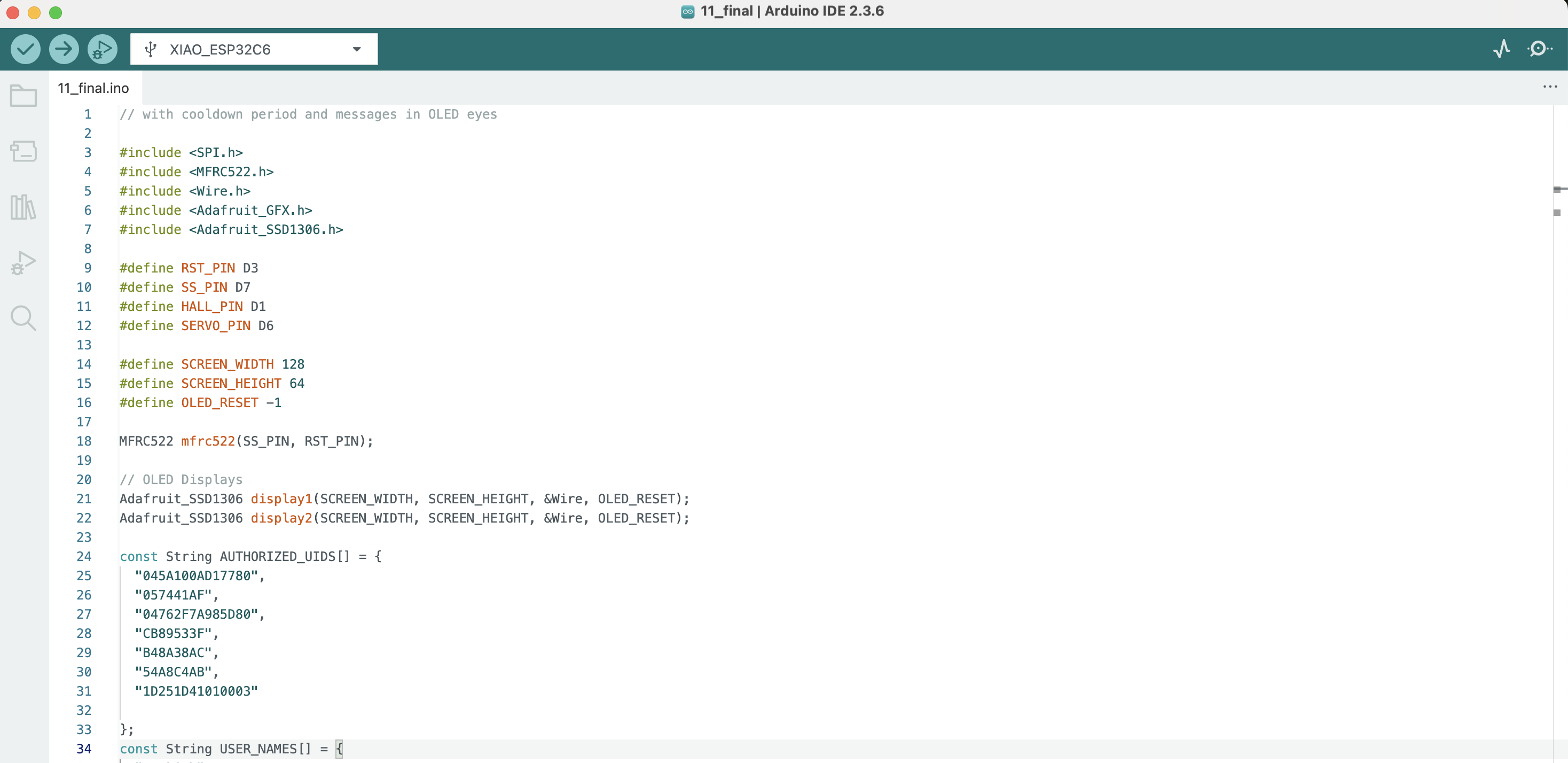 By plan we will program in the Arduino IDE as we now have some experience with it, it supports the XIAO ESP32-C6 board, and has libraries for all the peripherals in our project.