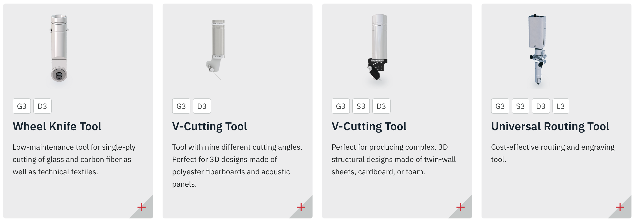 The machine has a few heads within which different tools like knives, creasing wheels, routers, and other modules may be inserted.