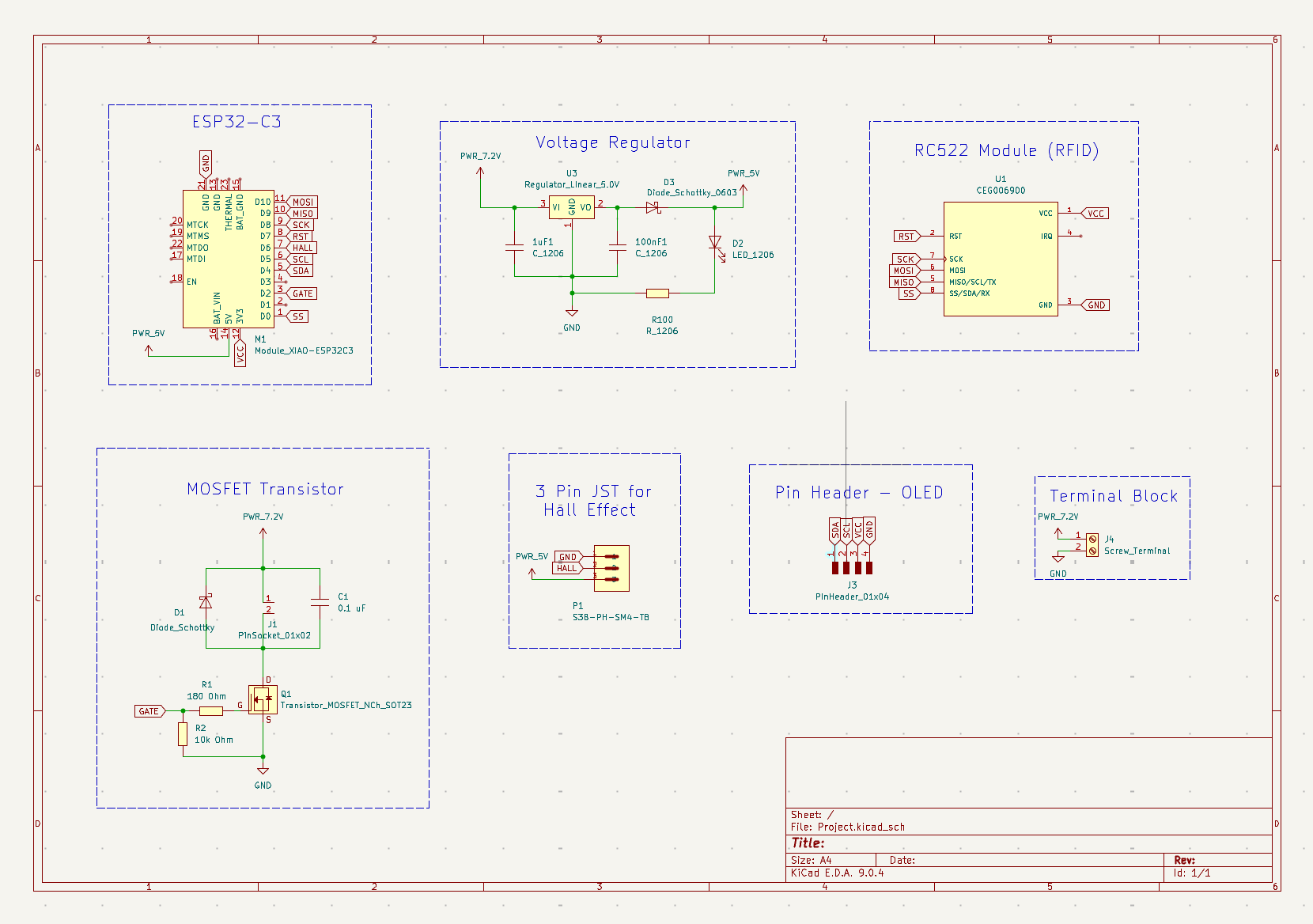Upon reflection and feedback from Saheen we will redesign, we'll redesign in a more efficient way and also use JST connectors, not only for the hall effect sensor, but for the motor, OLED, RC522 - in short, all our peripherals will be connected to the main board through JST connectors. This will allow flexibility in placing the board in the head, as the components can be adjusted and moved to the precise required locations instead of being forever statically fixed to the board.