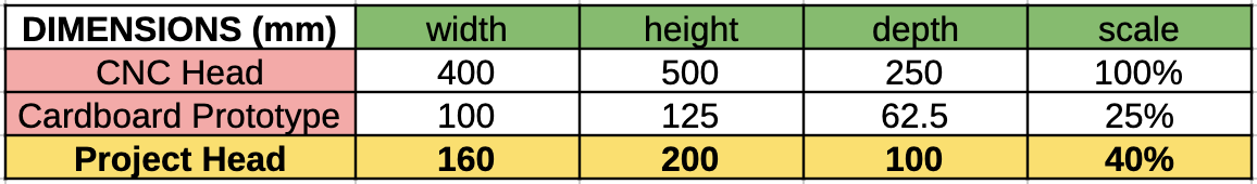 Ideal height may be about 20 cm: if the dispenser mouth is 3 cm from the bottom, allowing 15 cm for the total height of the cannister of chocolates, that will allow capacity of 20 chocolates as each is 7.5 mm in height. Here are some calculations of the initial CNC design, the cardboard prototype, and possible dimensions for the final project, at 40% scale.