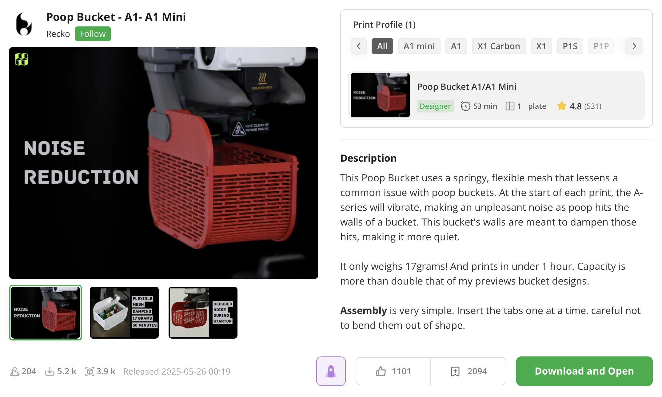 But how to create this curved feature? Well kerf-bending may help, in particular we may draw inspiration from a beautiful poop-basket for the Bambu Lab printers, developed by Recko.