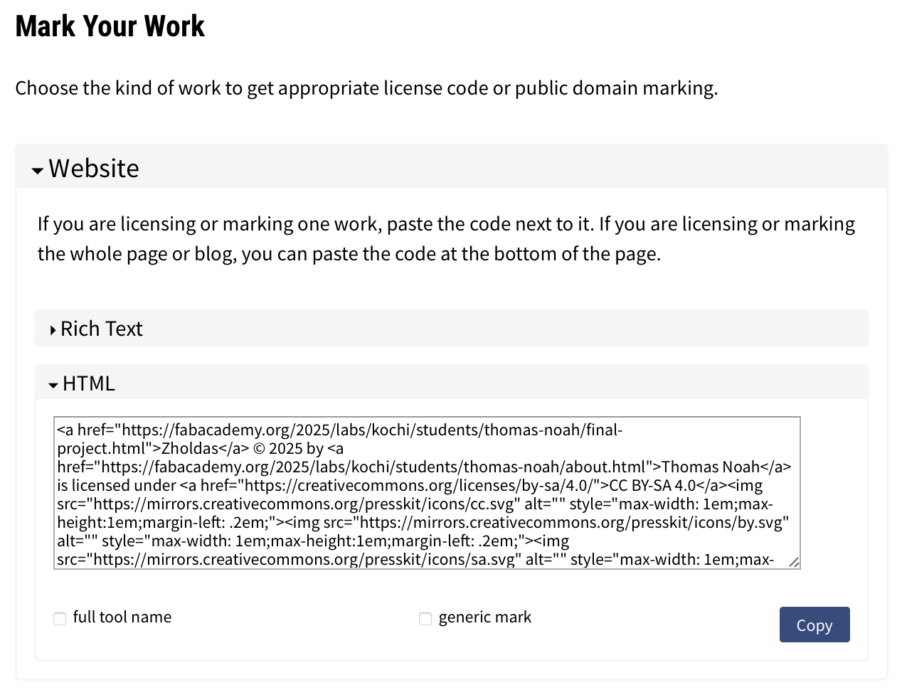 Creative Commons licenses also apply to non-software like images, music, text and projects like that of ours and the Fab Academy. The Fab Academy uses Creative Common licenses as they generally allow free use and sharing which fits their ethos and educational goals. Hence we will consider this license in further depth.