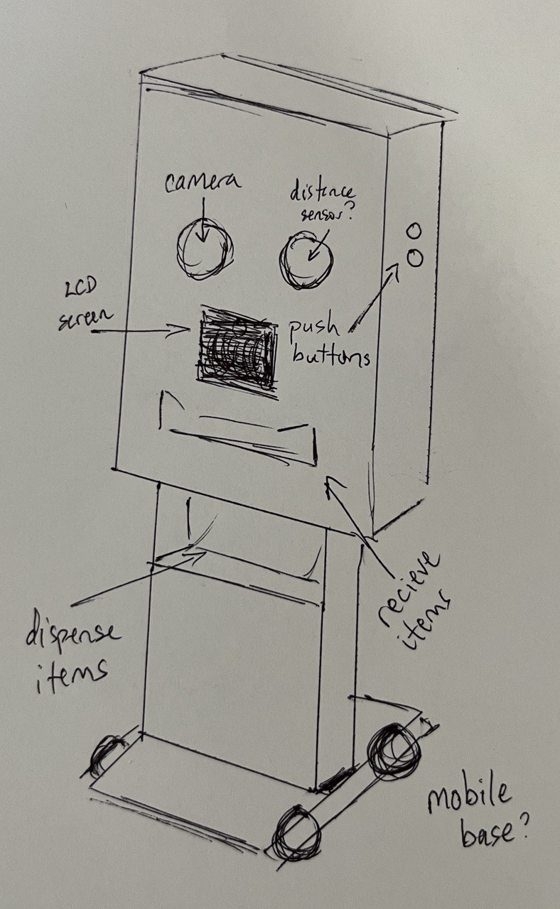 Here is an initial design for the dispenser. It will contain chocolates as well have the ability to dispense a small item such as a key. Anything that can fit in a small space. Perhaps some money. This is added because it sometimes is needed to pass some important object, such as a key, and this way it may be done asynchronously without necessitating meeting.