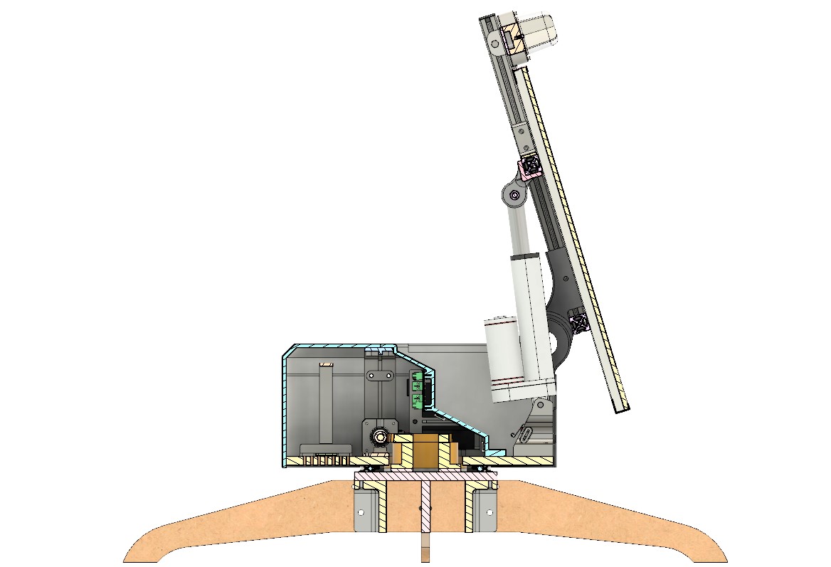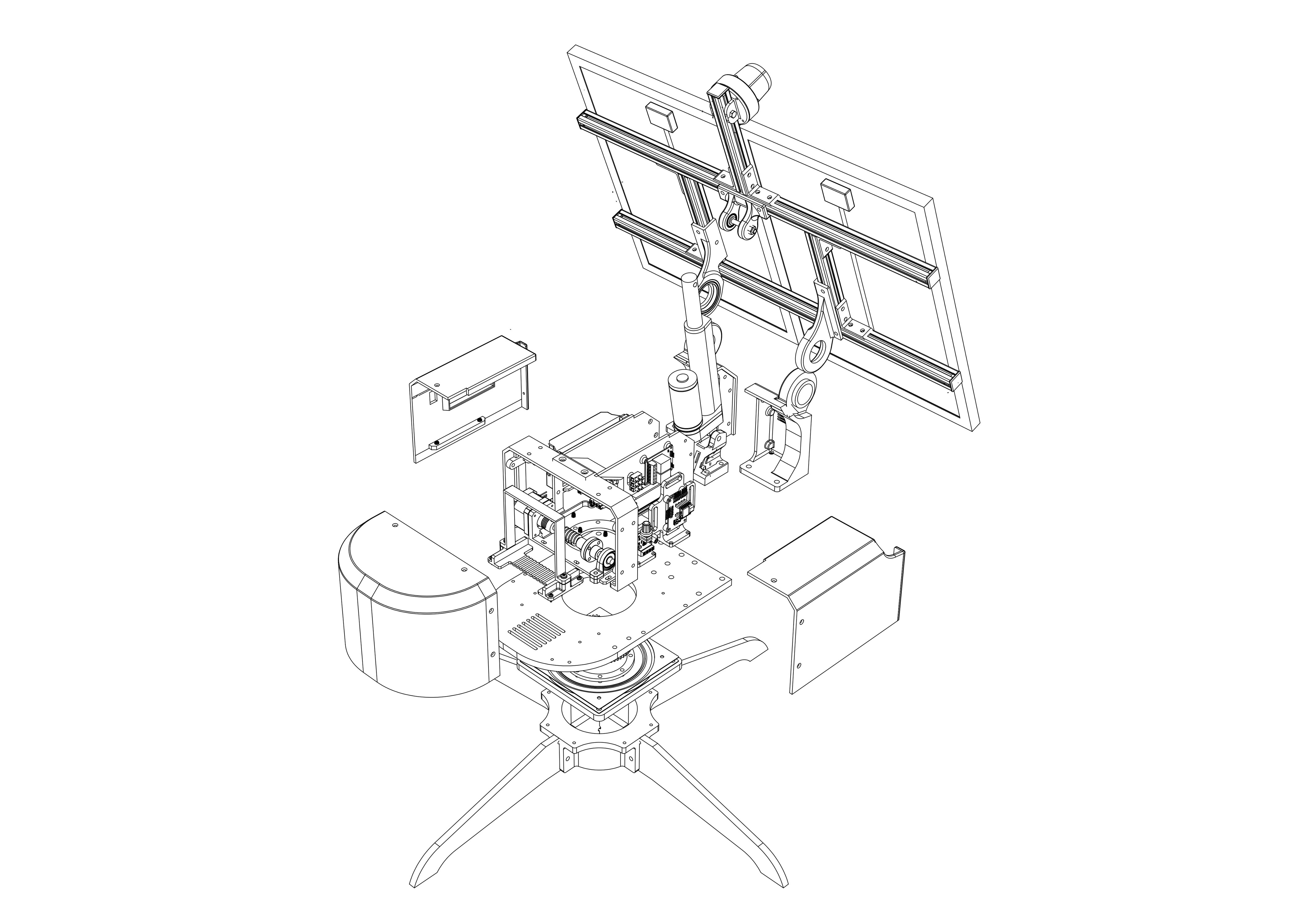 - Panel assembly:PV panels, aluminum sub-frame, sensor array, hinges, and actuator lugs.