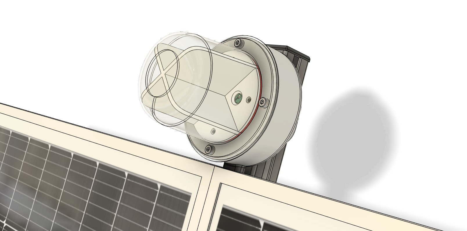 The sensor module is covered by a vacuum‑formed clear PVC cap that admits light while protecting against rain splash.