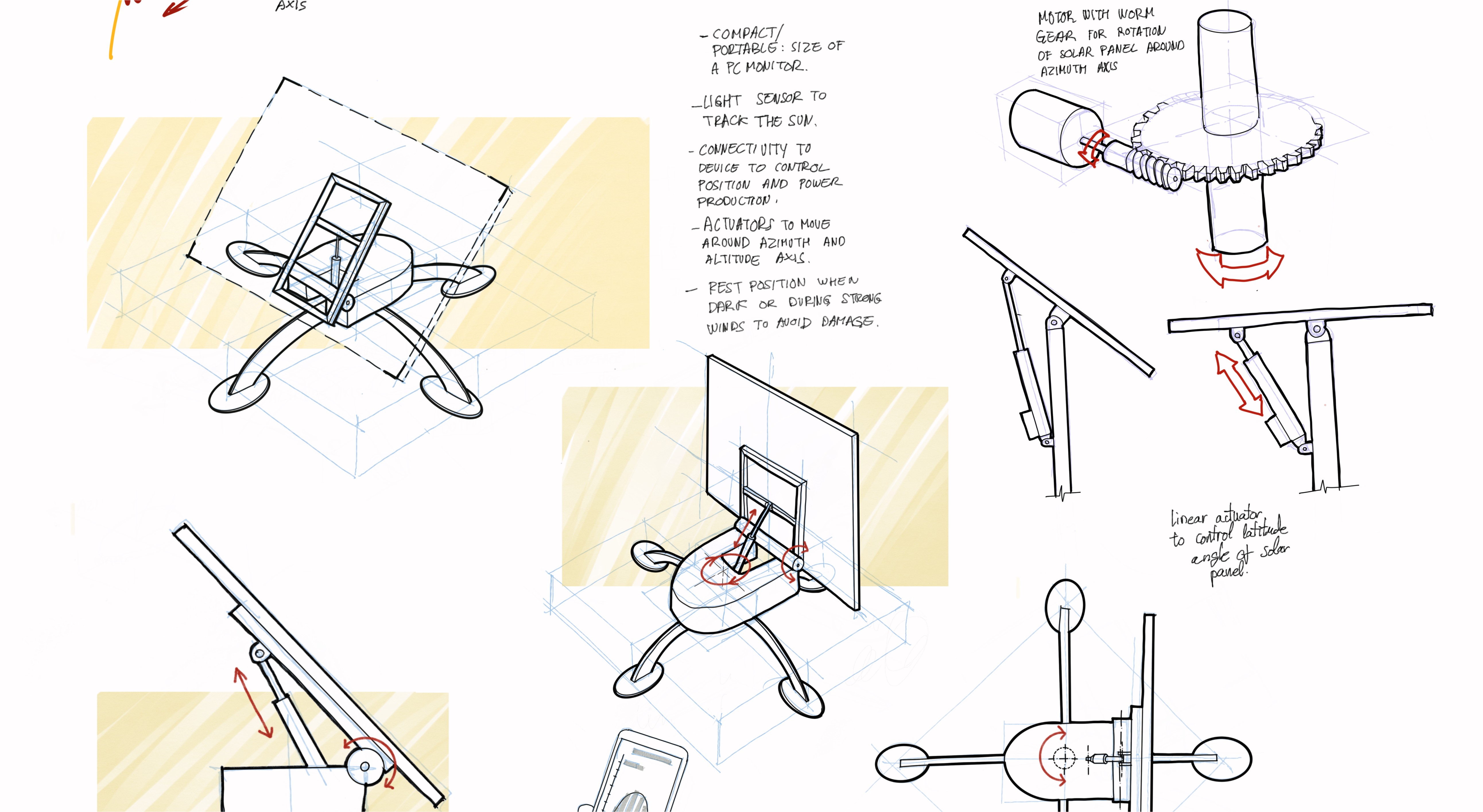 The final project started from an initial proposal that I developed with several sketches and notes to anticipate the main challenges, such as the mechanical actuation needed to rotate and tilt the solar panel and the types of sensors I could use. The FINAL PROJECT PROPOSAL page contains a detailed description of this initial concept.