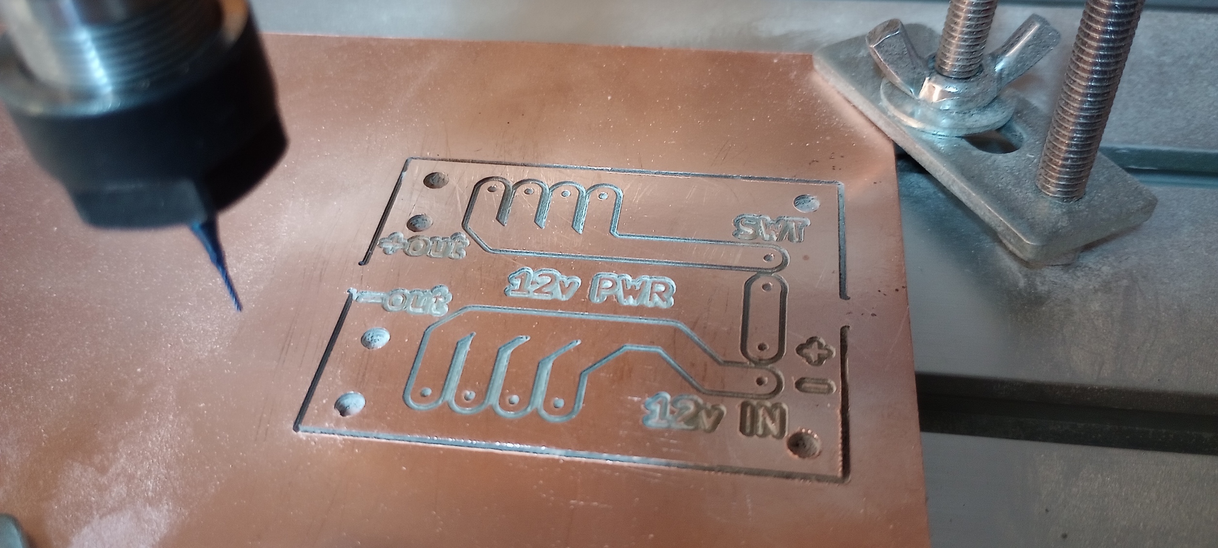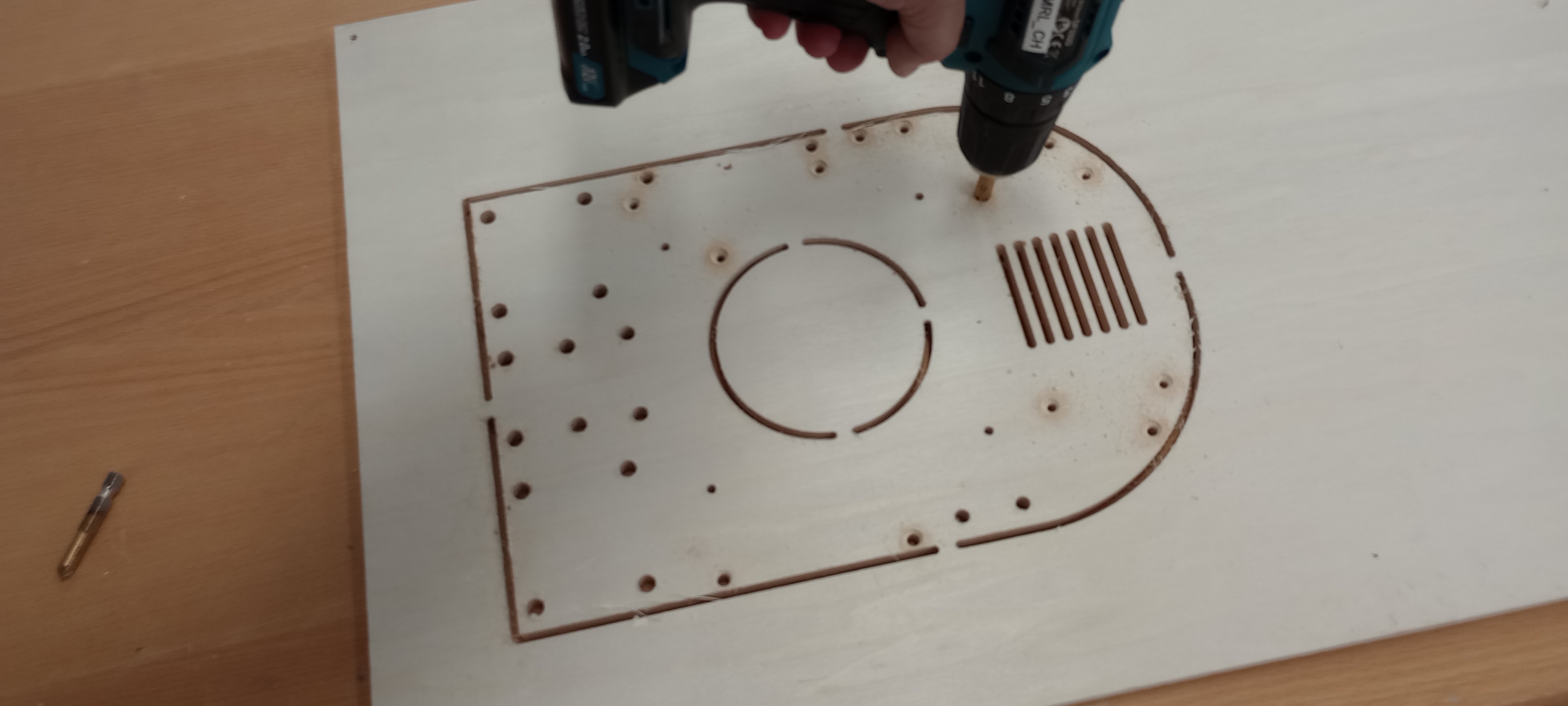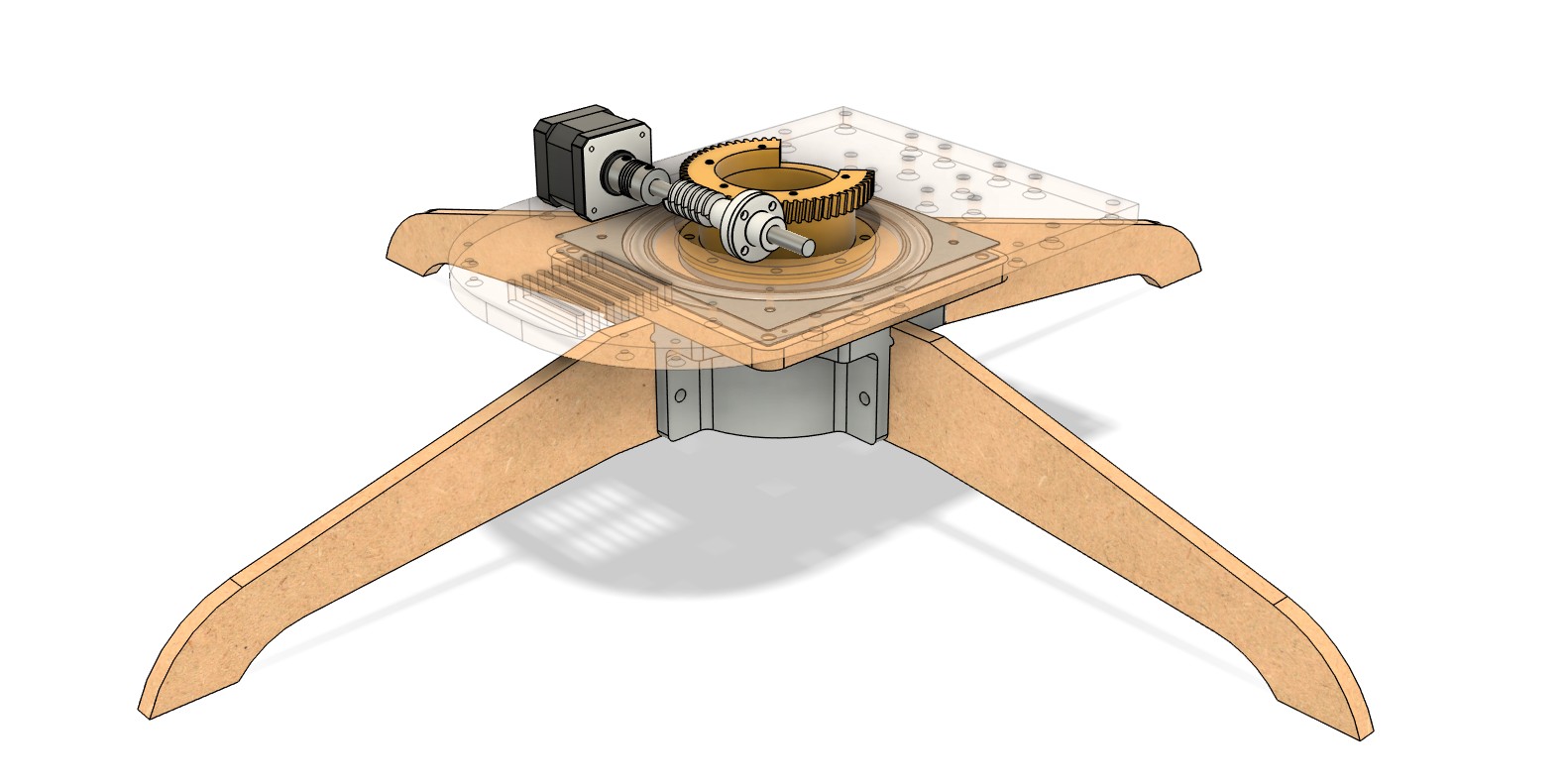 CNC cutting was the process I used to fabricate the base and legs of the tracker. I machined them from a 400x600x10 mm plywood board. In addition to cutting the base profiles, I included the bolt holes that secure the enclosure and internal components. Doing this ensured the precision and alignment required for parts such as the helical gear.