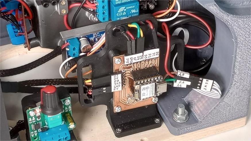 For control I used a Seeed Studio XIAO ESP32-C6 module mounted on a custom PCB. The goal of this board was to provide clean, labeled connections between the XIAO and all peripherals inside the enclosure.