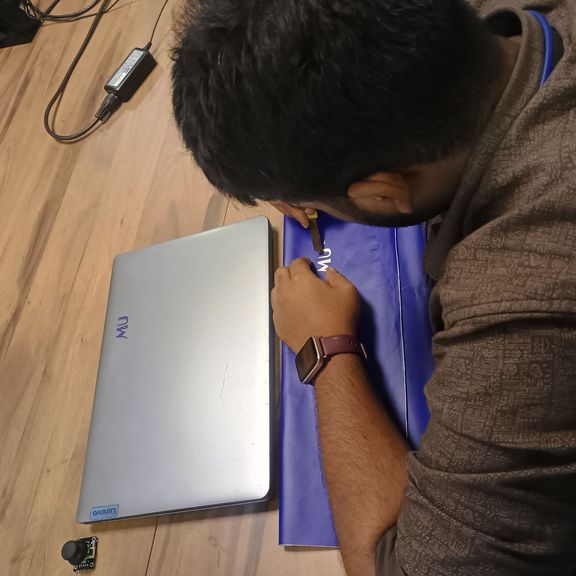 The final vinyl sticker: "MUHESH R"
