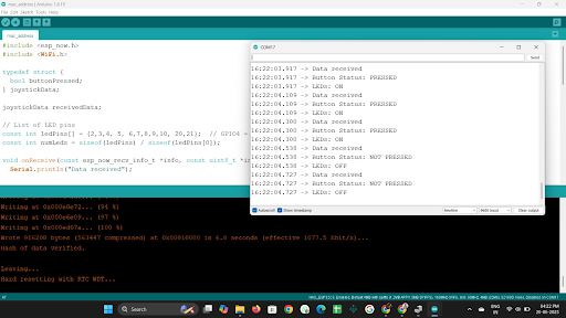 - Practiced struct-based data transfer over ESP-NOW, ensuring type-safe communication.