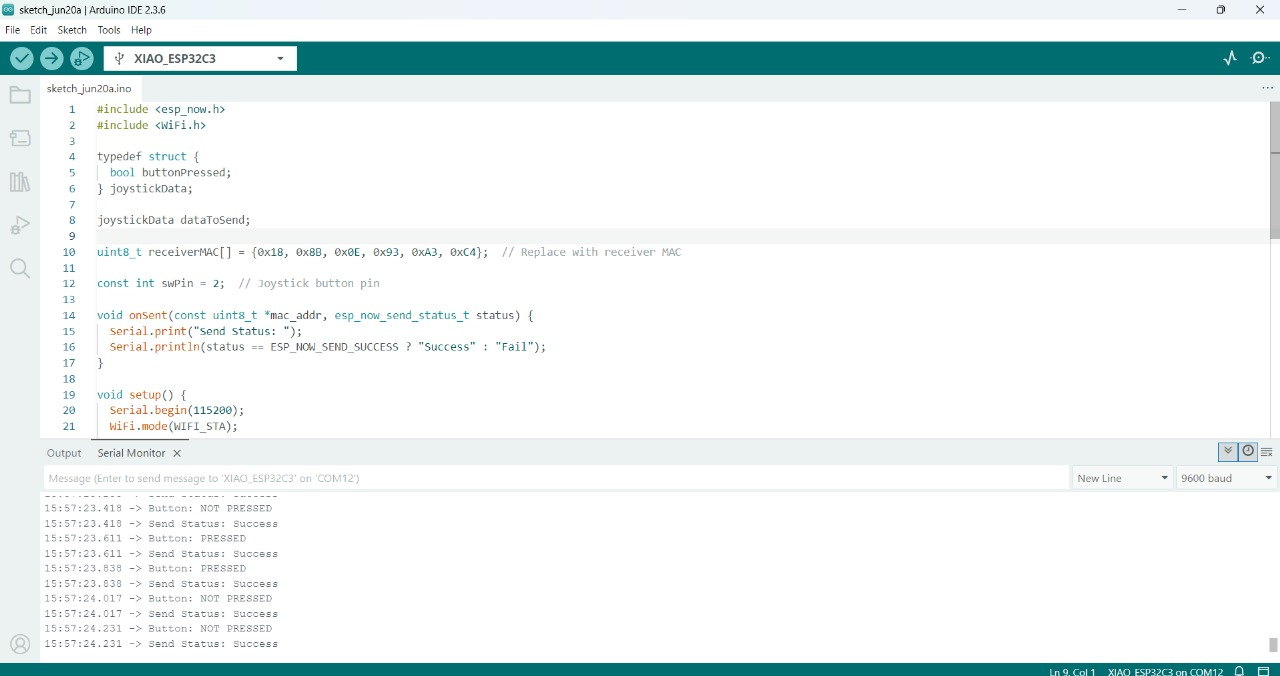 Serial.println("ESP-NOW Ready. Waiting for joystick button...");