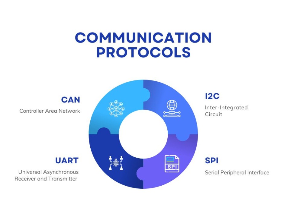 Wired communication in embedded systems uses physical cables to transmit data between devices. Common protocols include UART (for serial data), SPI (for high-speed device communication), and I2C (for multi-device networks).