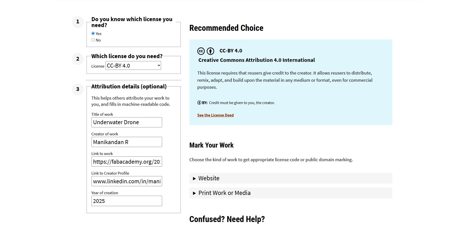 To license the underwater drone design, I visited Creative Commons.