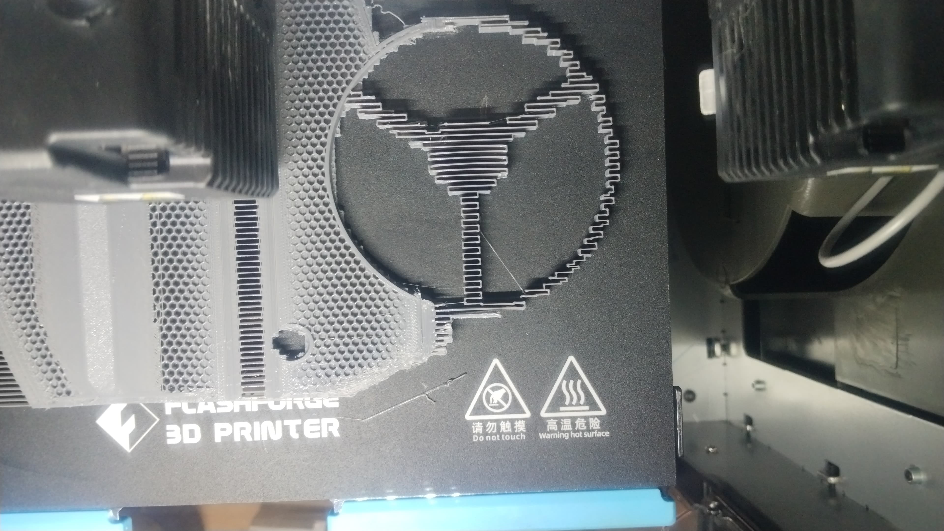 That is the raft part so I consider to minimize this error manually, so I moved the base plate little bit in front side so it can be printing properly, but I was wrong after seeing the result