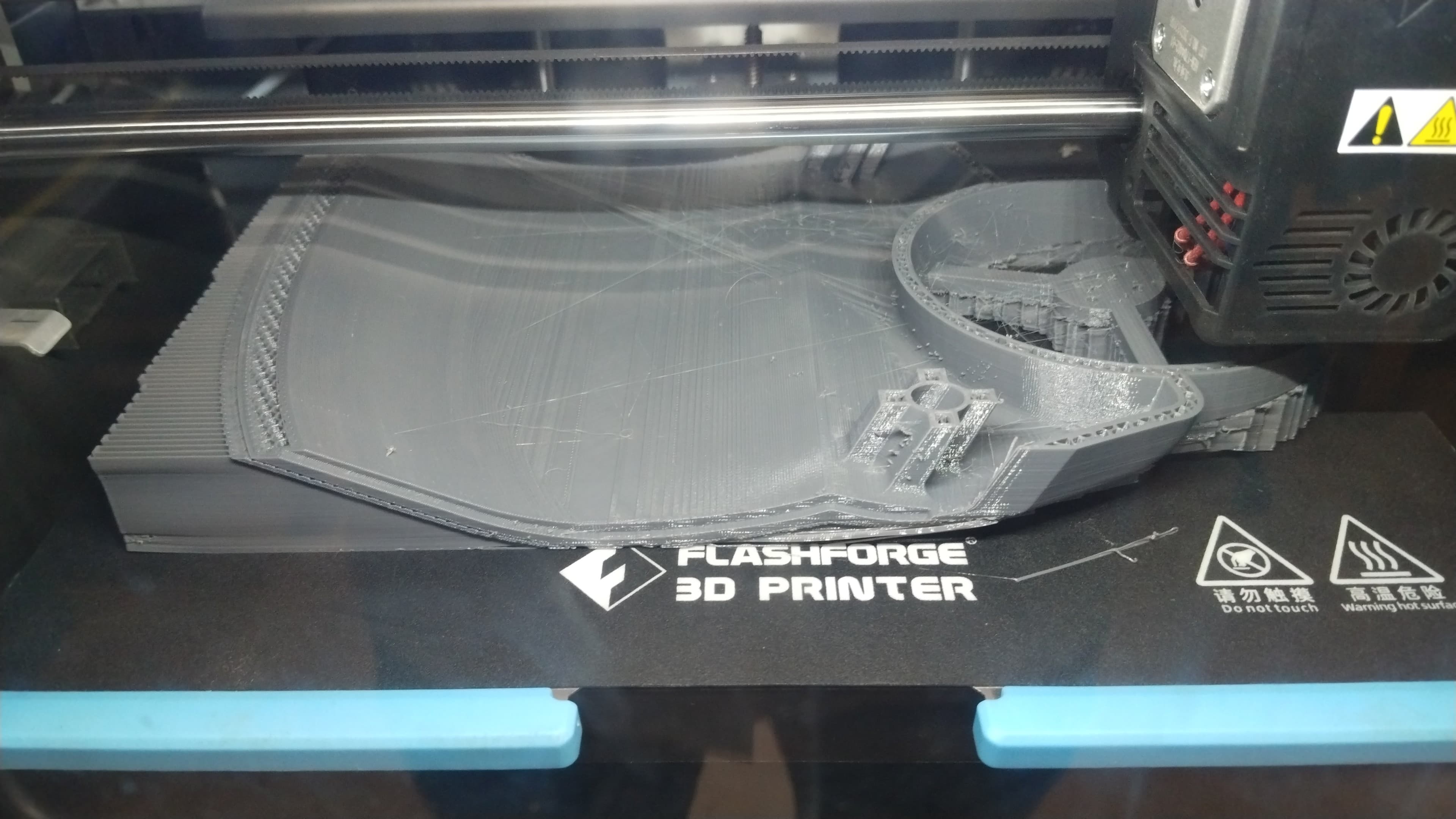 Still I can’t further do next step because the design is too large for this printer as well, so again I consider to divide it into total 14 parts and do the printing by Flash Forge Printer.
