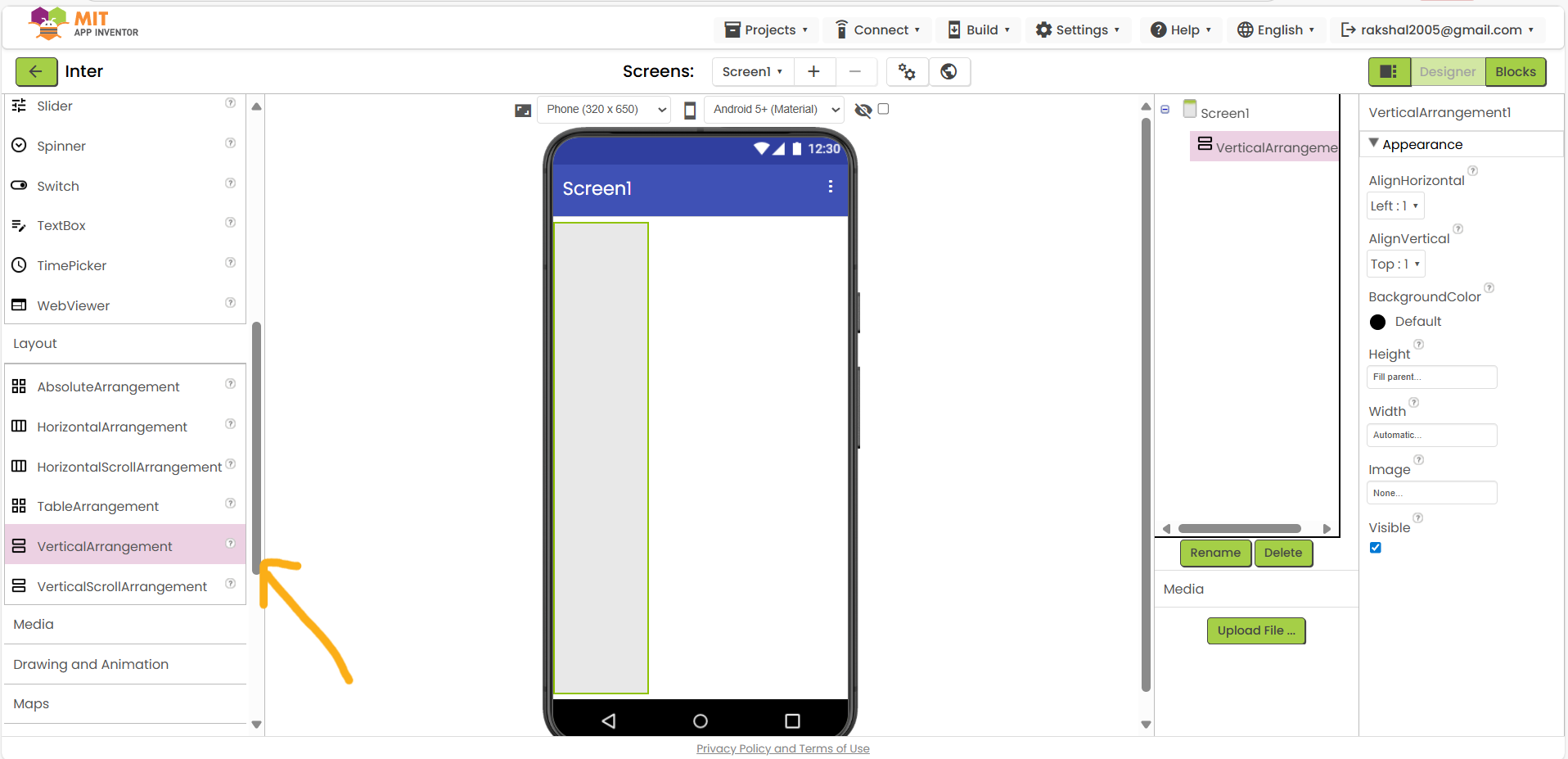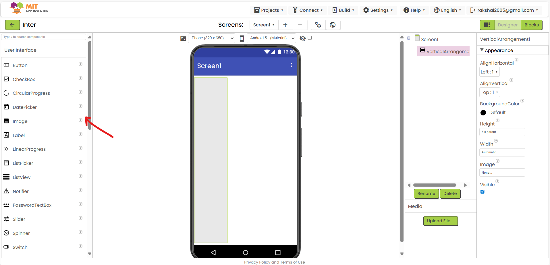 7.MIT APP Inventor User Interface will open: