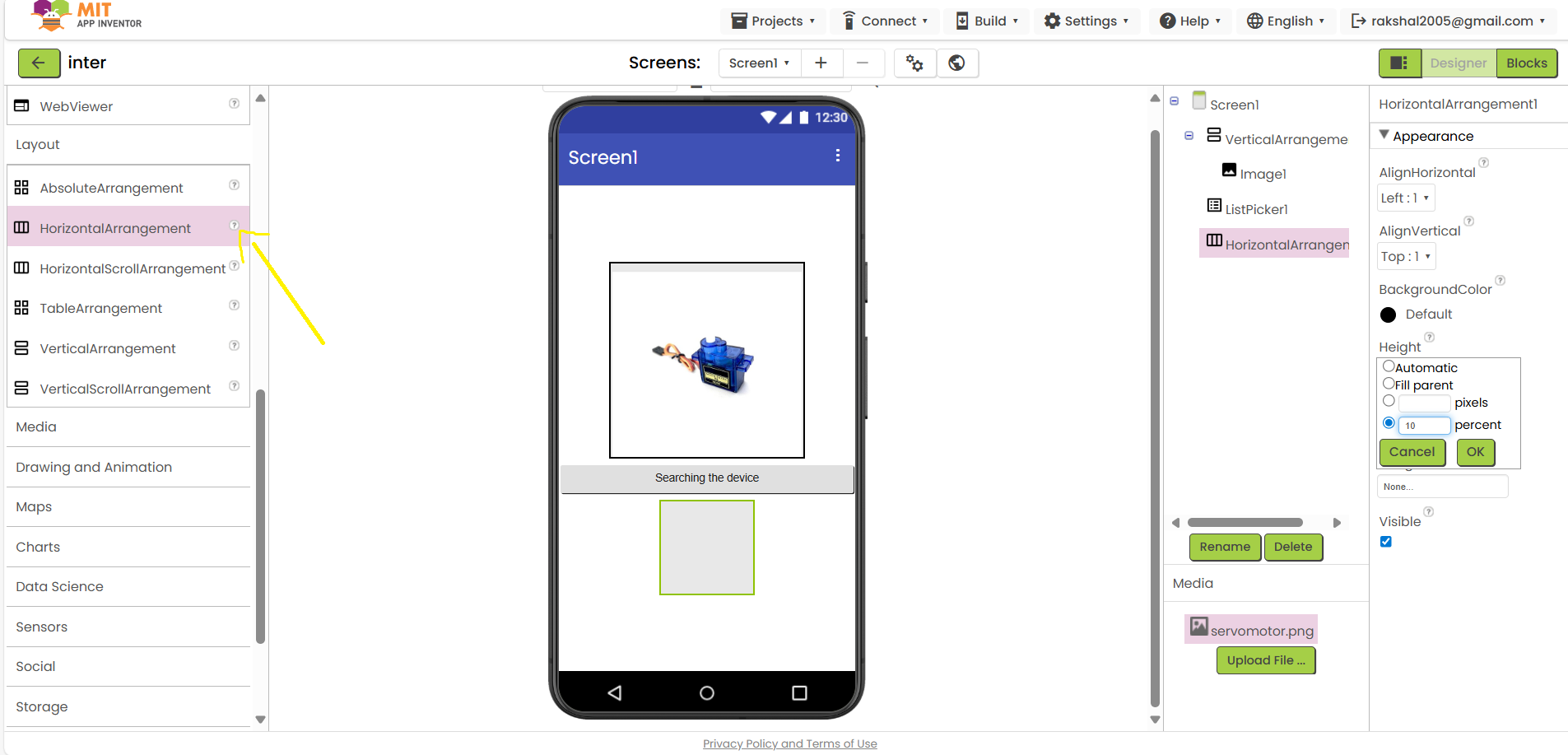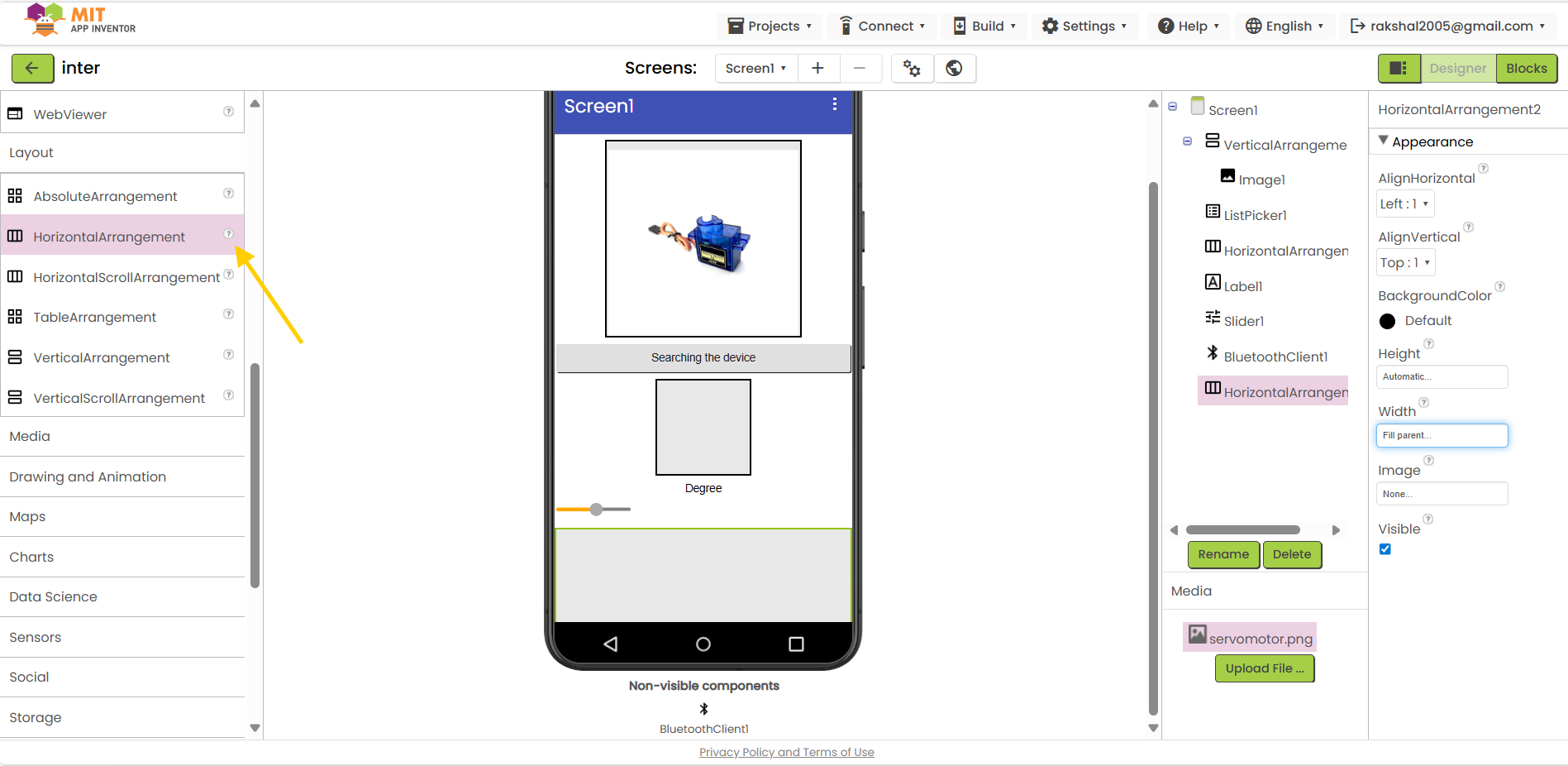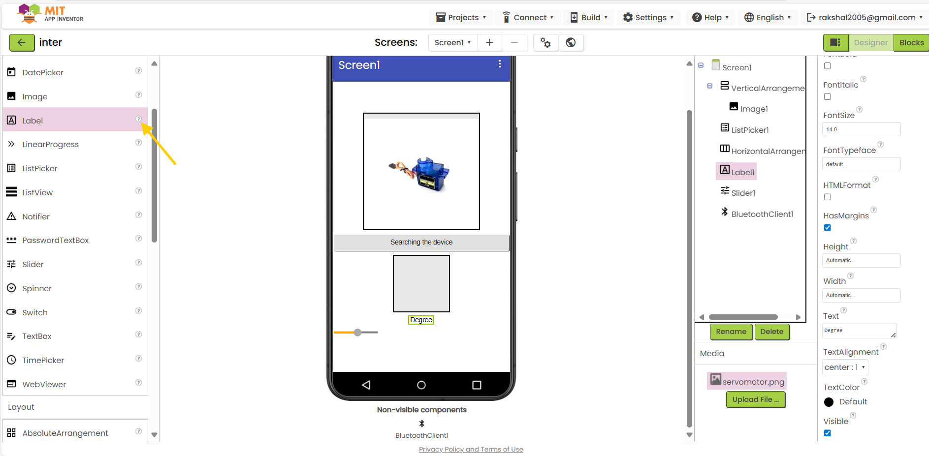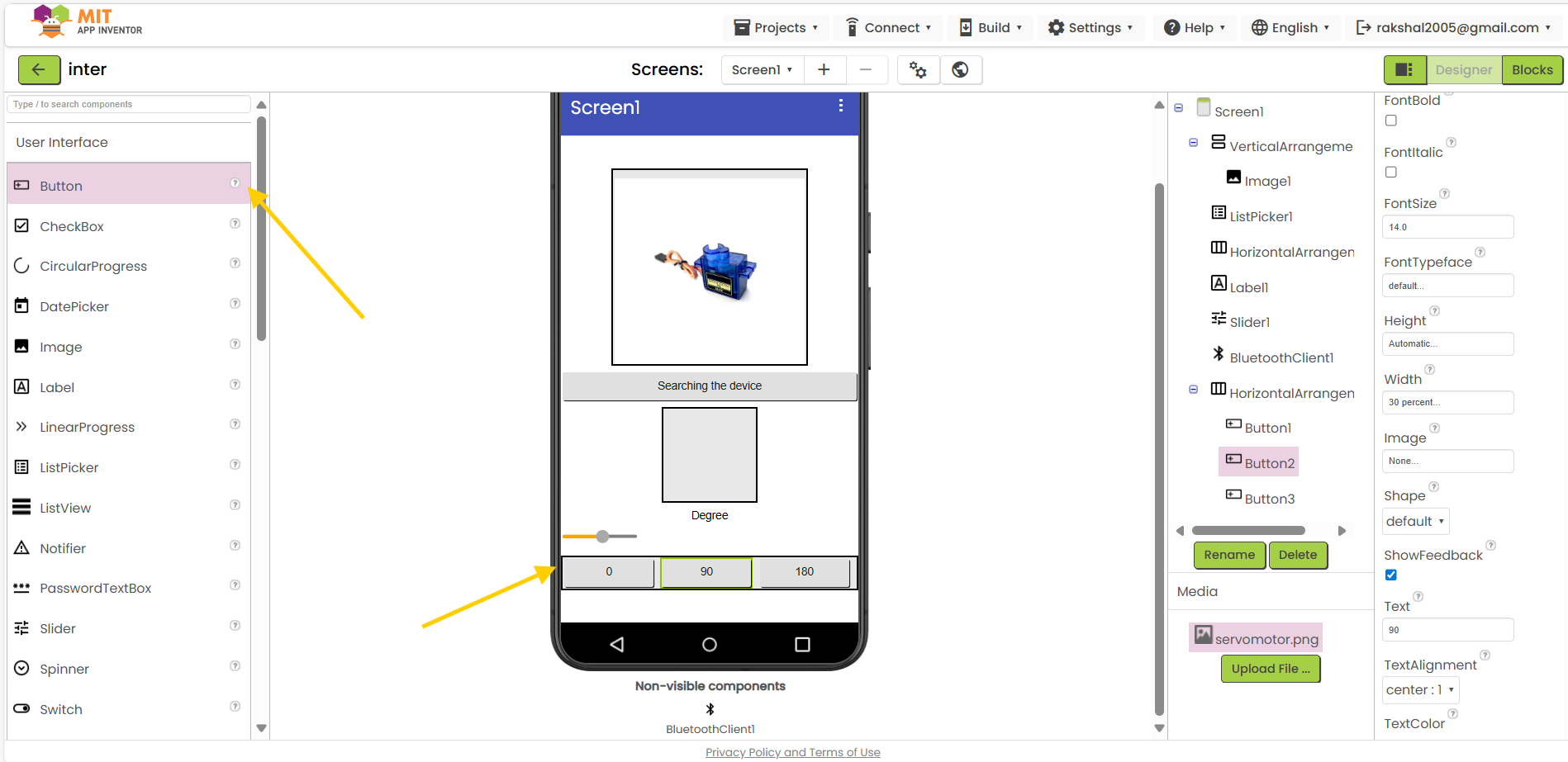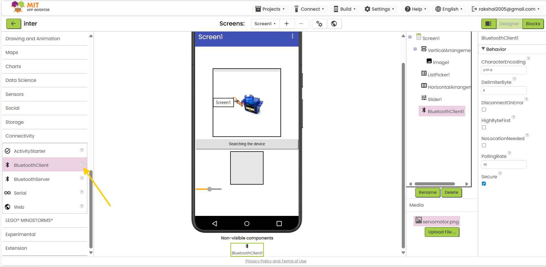 Bluetooth Component:In the Designer view, add the Bluetooth Client component to your application.