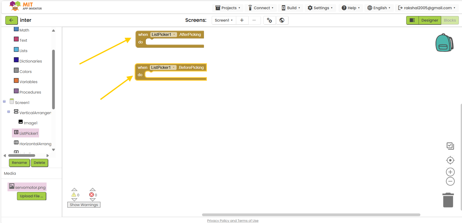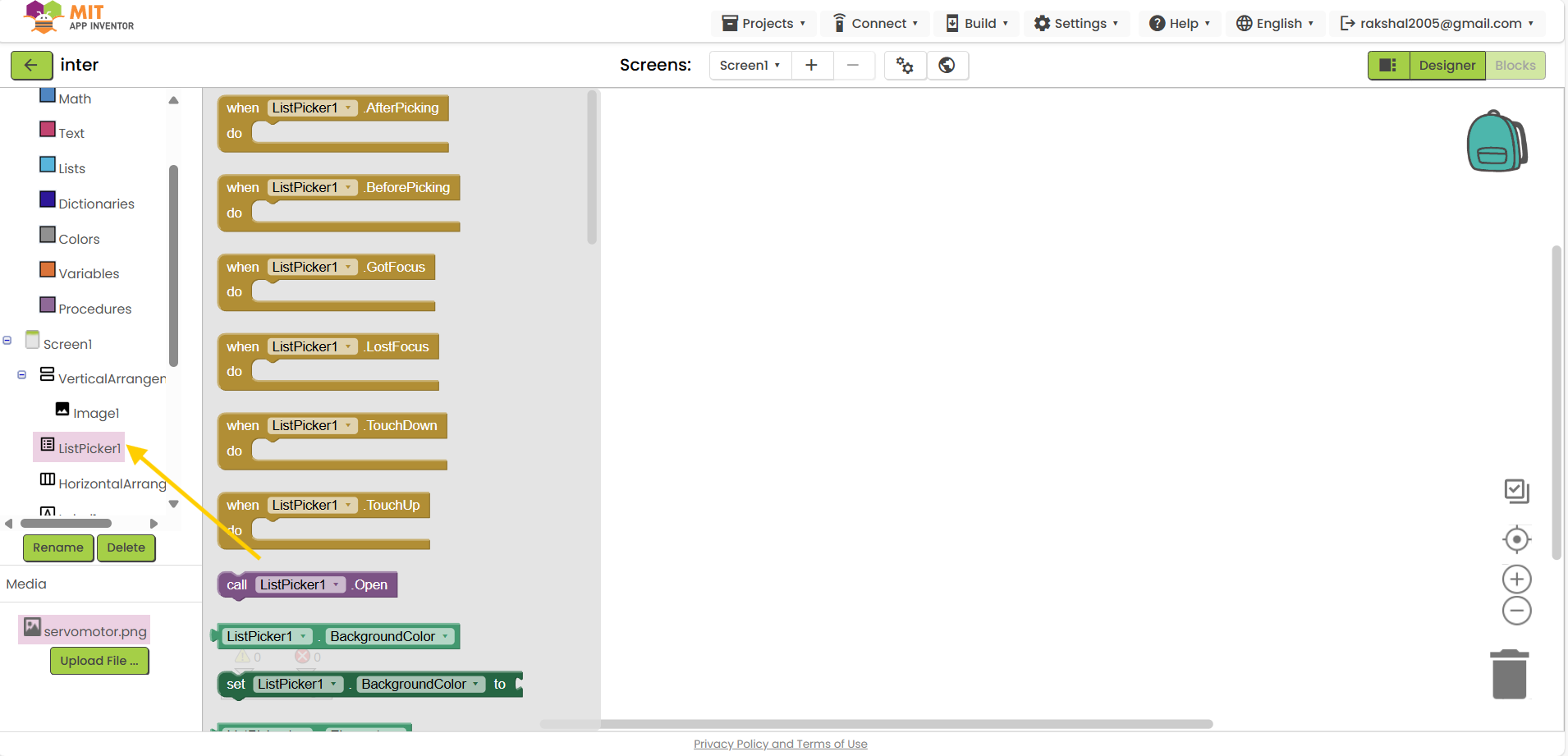 25.Insert listpicker block: