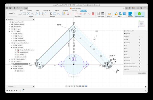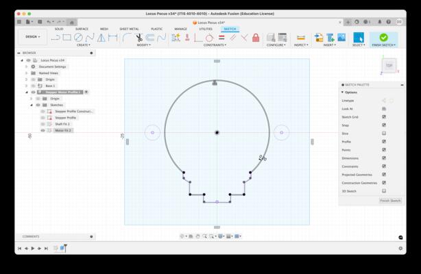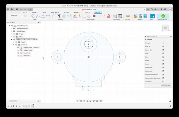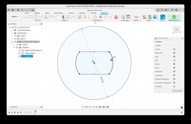 With the stepper motor reference profile set, I projected the needed elements from this component sketch as a basis for modeling other components.
