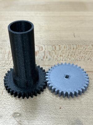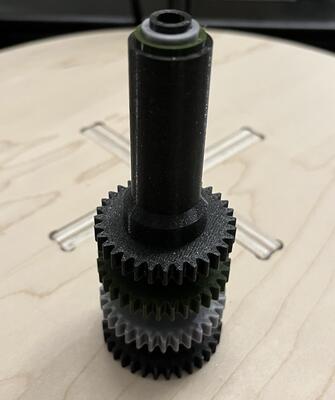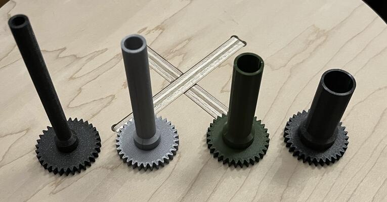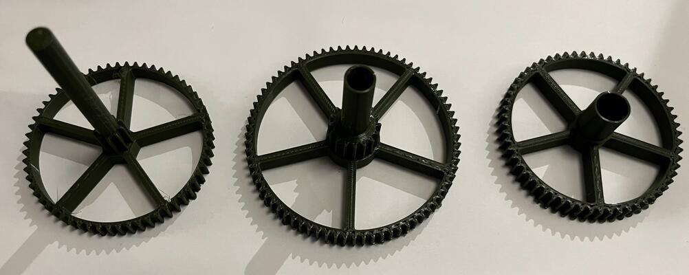 With the finalized shaft configuration, I incorporated the gearing into the shaft design and 3D printed the penultimate clock hand shafts for testing.