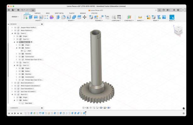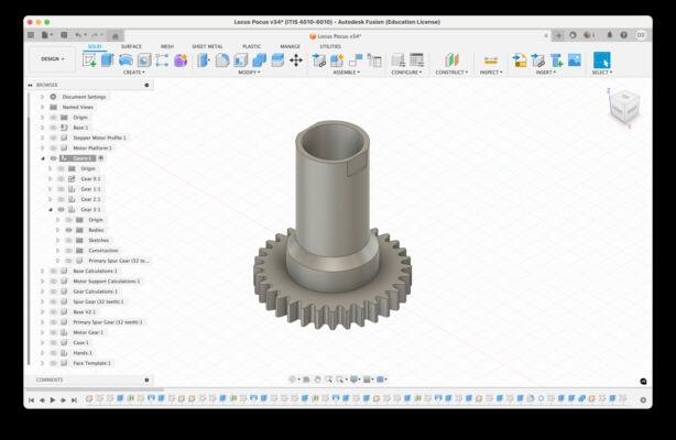 Gear Modeling in Fusion for Bottom of Clock-Hand Shaft