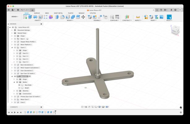 For the Locus Pocus project, I selected a spindle design approach that has 3D printed Clock Hand Shafts with 3D printed gearing. For motor mounting, I selected a multi-level, adjustable approach.