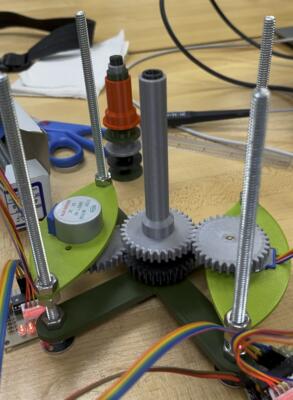 - While initial testing showed motor / shaft gear alignment to be reasonable, testing with a complementary structural support at the top revealed that the motors were slightly too close. Design of the motor platforms was revised to move the motors 0.7mm further from the center.