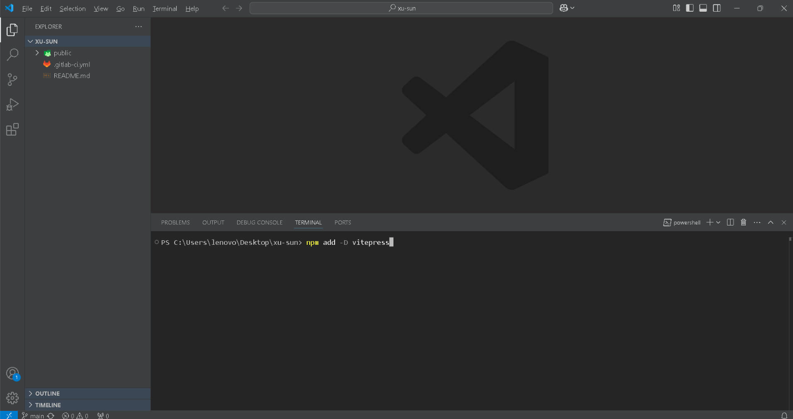 Use vscode to open the project and execute the following command in the terminal to install VitePress: