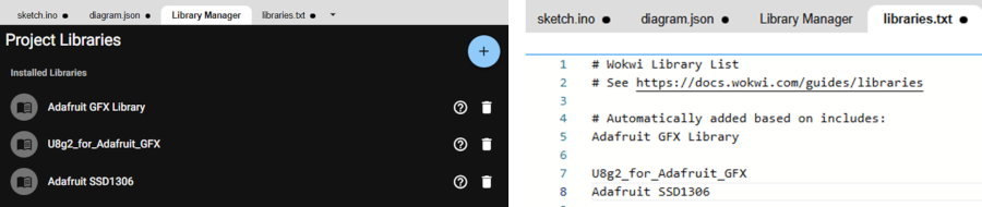 I add the Adafruit GFX and Adafruit SSD1306 libraries to display my message: