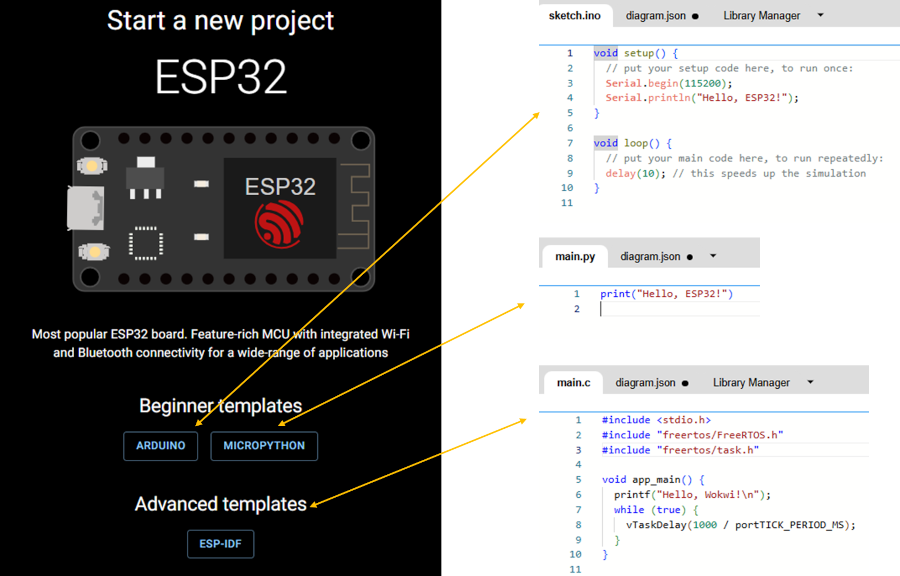 Wokwi is an online Electronics simulator. It can be used to simulate Arduino, ESP32, STM32, and many other popular boards, parts and sensors. Wokwi simulates Wokwi simulates a wide variety of hardware components, including microcontrollers, sensors, displays, and more. It supports the following architectures: ARM, AVR, RISC-V, and Xtensa. microcontrollers, sensors, displays, and more. It supports the following architectures: ARM, AVR, RISC-V, and Xtensa.