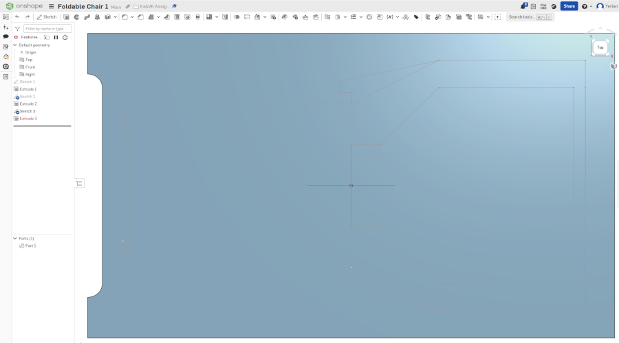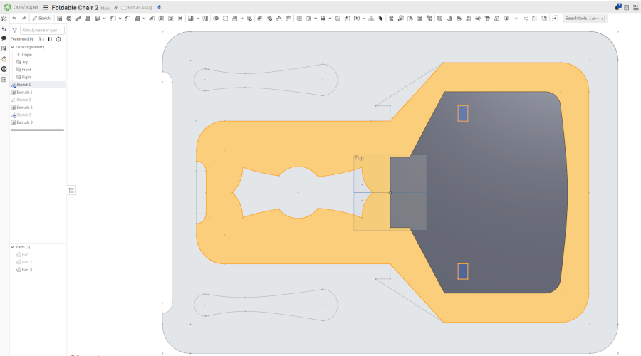 I have created 3D Design of Foldable Chair on ONSHAPE by making three sketches and extruders.