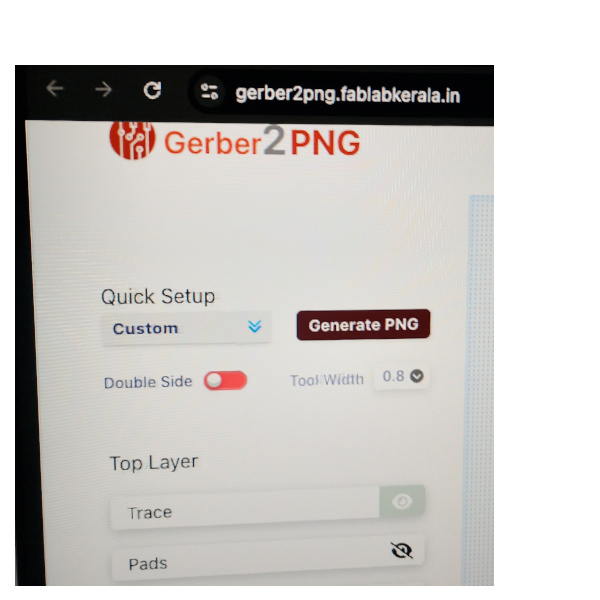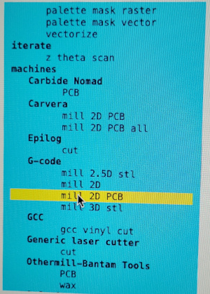 We used modsproject.org and opened programs →to switch G-code to mill 2D PCB, then it read png and loaded the 1-bit PNG of top copper (1000 DPI)