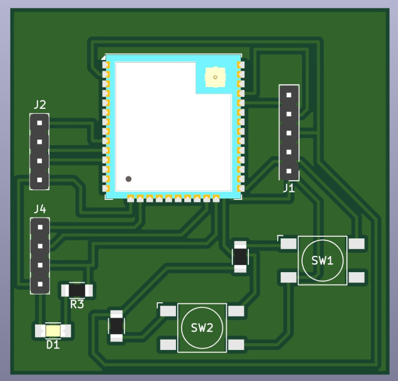Here my learning outcomes: I learned to translate requirements into a complete KiCad schematic and route a manufacturable PCB, respecting ESP32 constraints like 3.3 V power, EN/boot pins, headers, and antenna keep-out.