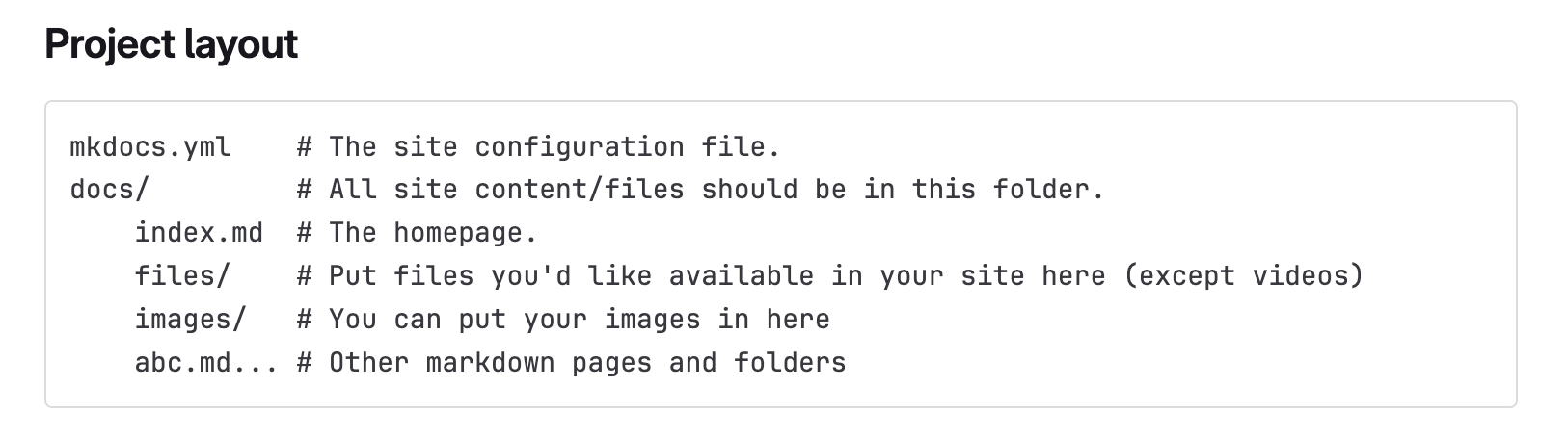 MkDocs is a static site generator for Python that takes Markdown (.md) files and builds a website in HTML/CSS/JS—great for project documentation. I’m using MkDocs because it’s a simple, lightweight solution. I had no prior experience building websites, so I installed it on my machine with Python, and I’m running it with Python 3.10.