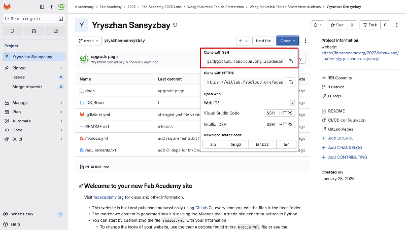 When I opened my GitLab repository, I saw the structure of my website. Before that, I didn’t have any experience with GitLab or website development, but I wanted to gain hands-on experience in building websites and using GitLab. I believe I can create a good website — I plan to use HTML and MkDocs with Python 3, and I’ll develop it in Visual Studio Code.