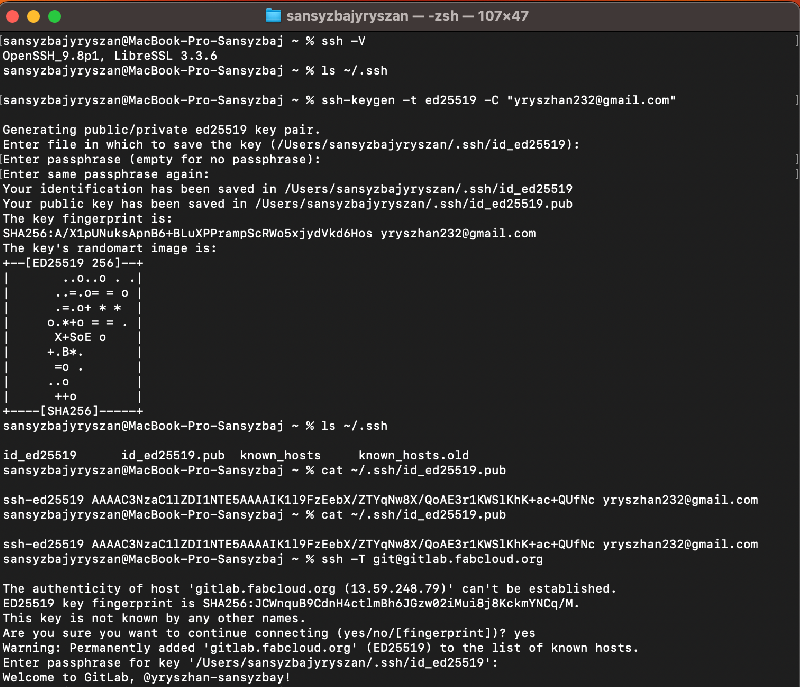 After setting up the SSH connection, I cloned my project from GitLab using: