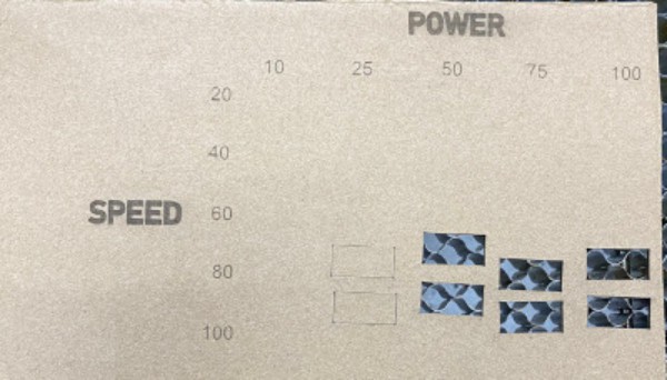 This week I performed a kerf test to understand how much material the laser removes while cutting. This value is important for designing press-fit joints and accurate parametric models.