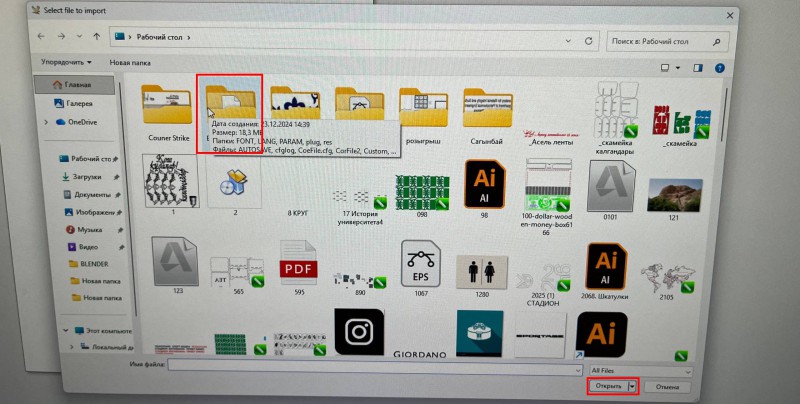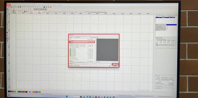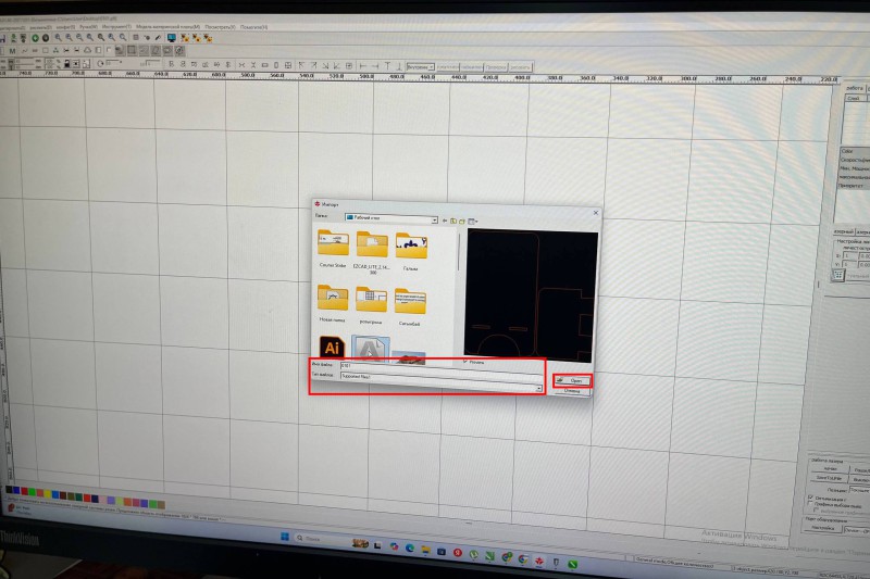 Here, I am importing my DXF file—exported from Fusion 360—into the laser cutting software. This is where the digital design transitions into the machine workflow. The highlighted area shows the file selection window before loading it onto the workspace.