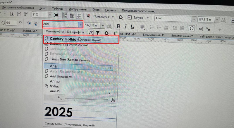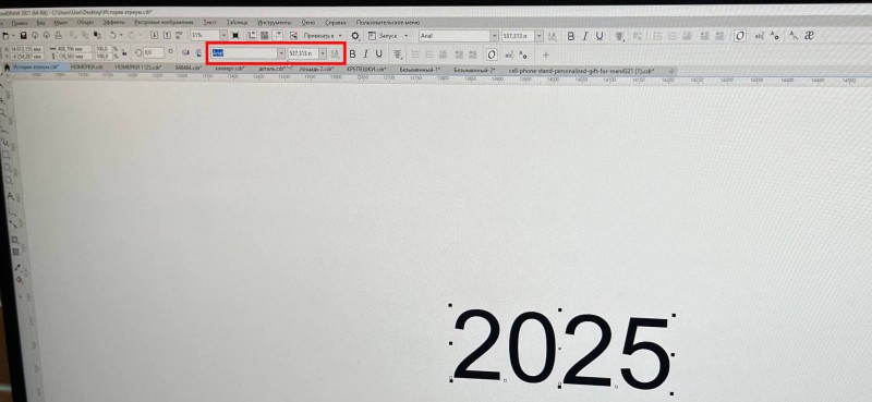 I wanted to cut the text “2025” from vinyl using a plotter, so I opened CorelDRAW and started preparing the file.