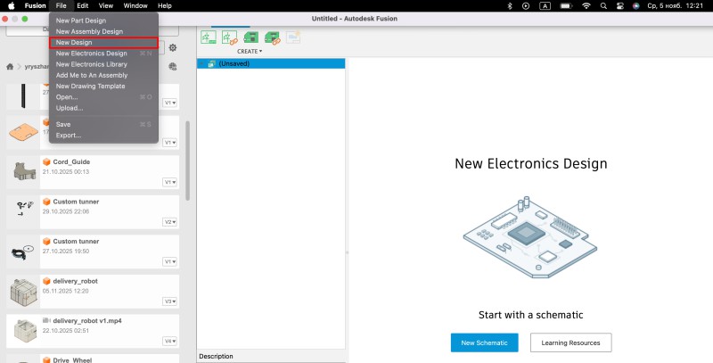 I opened Fusion 360 and created a New Design to start modeling the phone stand.