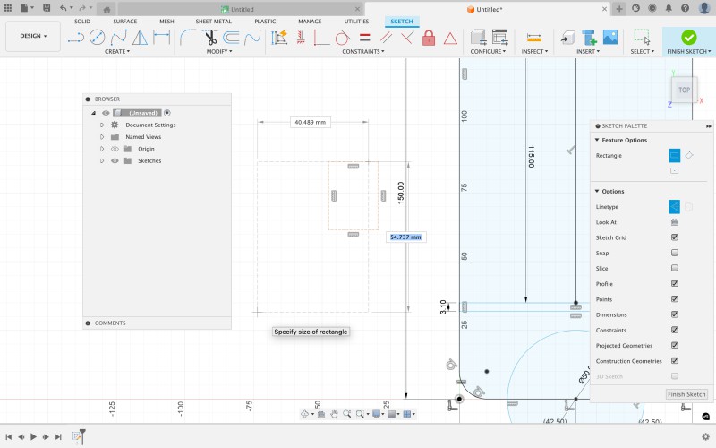 I drew a rectangle sketch and defined its dimensions to match the required size of the phone stand.