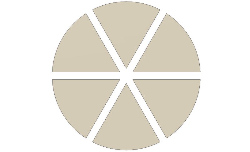 This is the result of the parametric model—six identical slices arranged in a circular pattern. All dimensions are controlled by parameters, so if I change any value (diameter, thickness, or number of pieces), the entire shape updates automatically.
