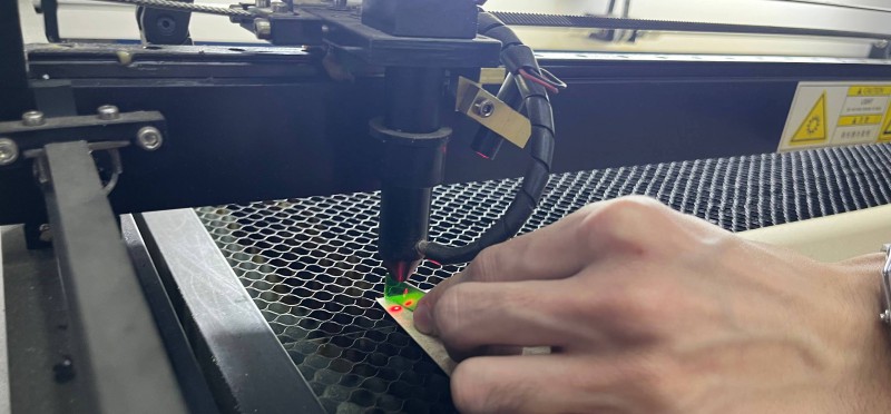 I aligned the laser head with the material using a plastic spacer with a thickness of about 1 cm, and then I started the cutting process.