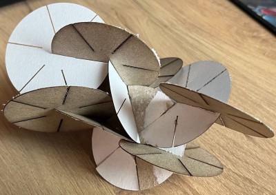 After cutting all the parametric pieces on the laser cutter, I assembled them into a 3D structure to test how well the slots fit and how the geometry behaves in physical form.