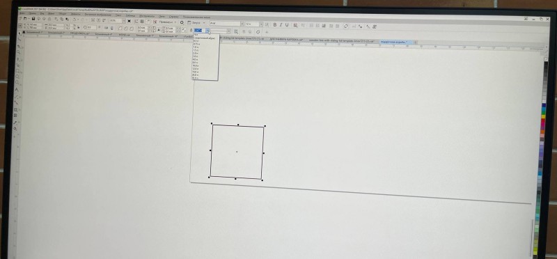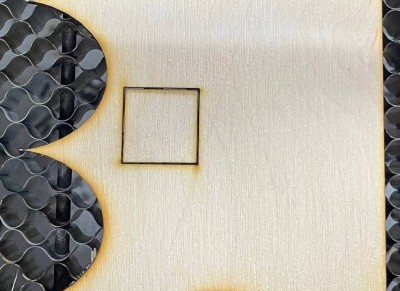 First, I designed a 20 × 20 mm square in CorelDRAW and exported it to the laser cutter.