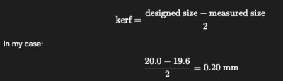 So the kerf of this machine and material combination is approximately 0.20 mm.
