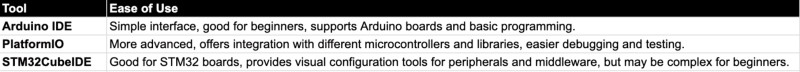 | Debugging | Advanced (JTAG, GDB) | Basic serial monitor |