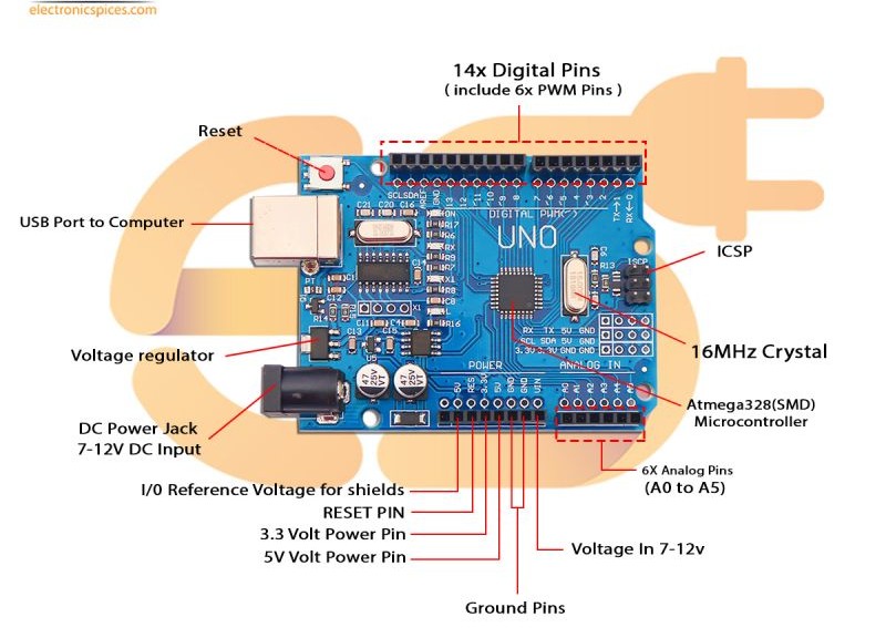 Arduino Uno is a small open-source microcontroller board used for building electronics projects. It’s based on the ATmega328P chip and has digital and analog pins for connecting sensors, LEDs, and motors. You can program it through the Arduino IDE using C/C++, making it ideal for beginners and prototyping.